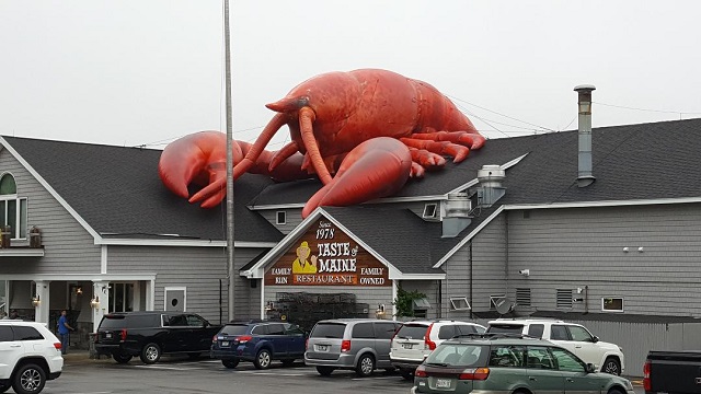 We come across a little outdoor restaurant for which Nancy has seen nothing but five-star reviews on Yelp. They are known for their lobster rolls, so we order two, with drinks. I get ready to pay cash, but the guy says, "The total will be $52." Gulp. But they are historically delicious - two toasted New England style hot dog buns absolutely stuffed with tender lobster meat. (The New England hot dog buns are without question the way to go for this traditional Maine sandwich.)